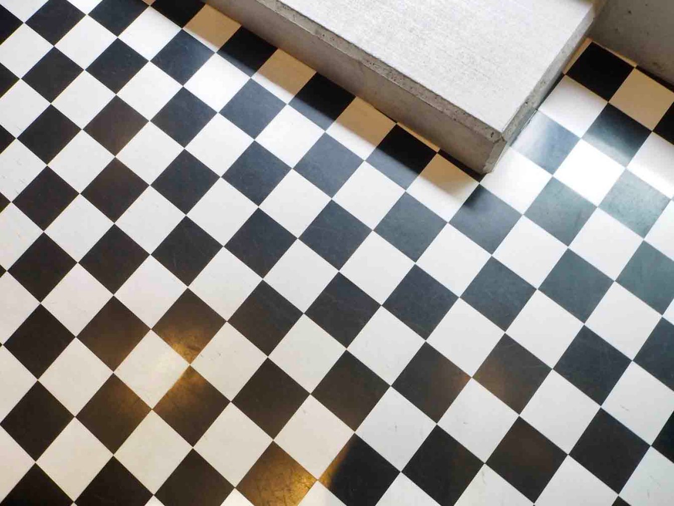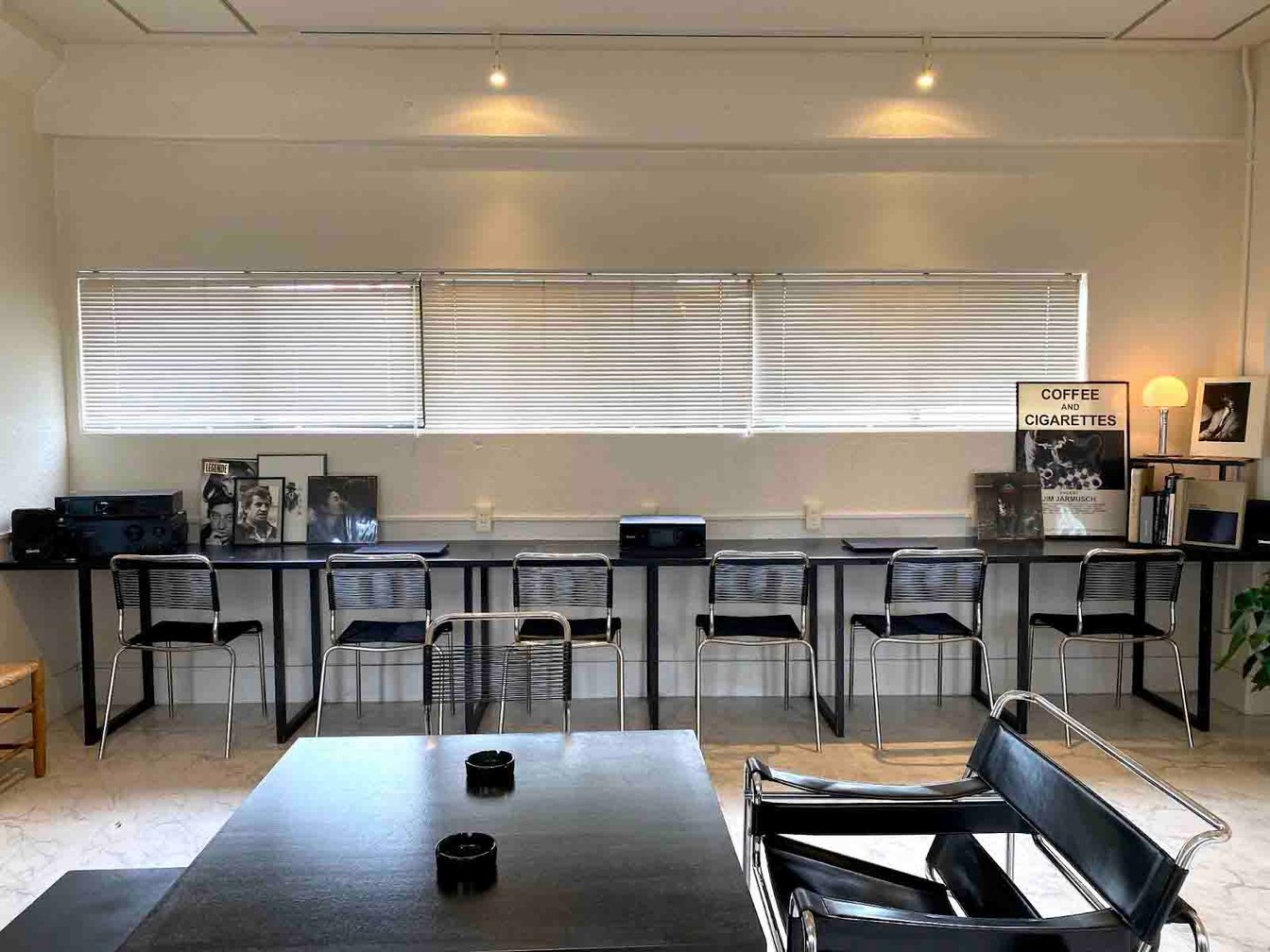 店名「JARMUSH」にもつながる、「コーヒー&シガレッツ」のジャケット写真を意識したのがモノクロ調の床。