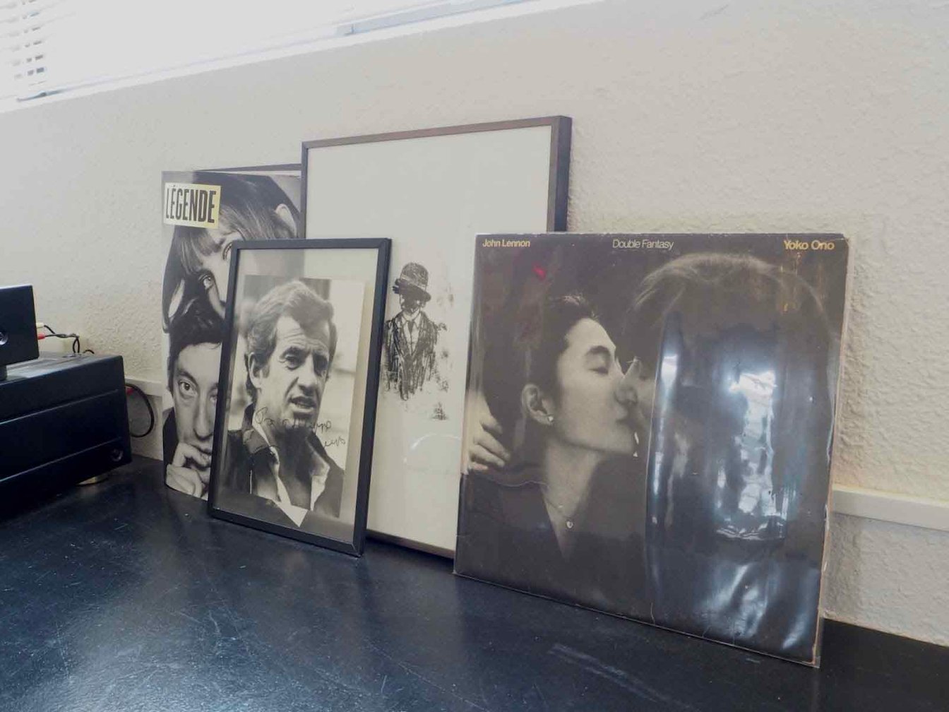 ジョン・レノンとオノ・ヨーコのジャケットのレコードは、下北沢で50年やっていたロックバーの老舗「トラブル・ピーチ」のオーナーさんから店を閉めるときに渡されたもの。下北沢で受け継がれるカルチャーに感動します。