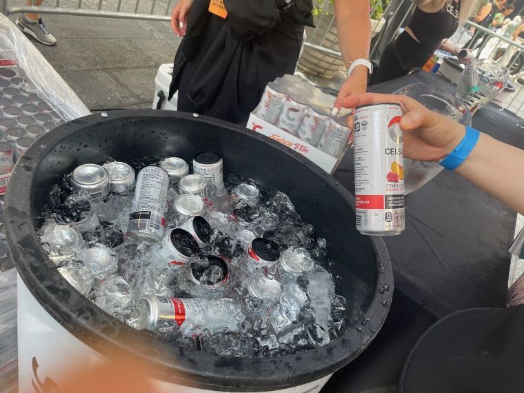 ちなみに、タイムズスクエアのヨガイベントもエッジのヨガクラスでも、ヨガマットは支給される。タイムズスクエアのヨガイベントでは、昨年はフィットネス機器のペロトンがスポンサーになってヨガマットが配られた。そのヨガマットは厚手で立派なのだがものすごく重く、それを家に持って帰るのが一番のエクササイズになったと笑い話になった。今年はガイアムがスポンサーとなり、軽いヨガマットで持って帰りやすかった。ヨガマットだけでなくウォーターボトル、ソフトドリンク、ヨガ雑誌など、さまざまなお土産が出て、飲酒可能な年齢の参加者には白ワインをちょっぴり飲めるリゾート感覚のセクションもあった。