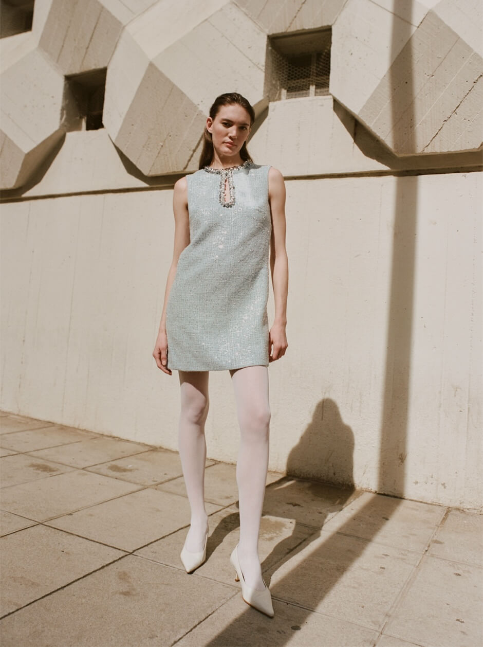 dress by ZADIG VOLTAIRE, tights by CALZEDONIA, shoes by MIU MIU, necklace by SITA NEVADO