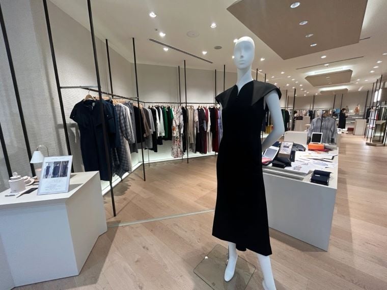 主力アイテムは、トルソーを使った立体裁断でパターンを起こしたジャケットやワンピース。体に美しく沿うシルエットが魅力で、尾州産地などの生地で提案する。中心価格は10万円台。