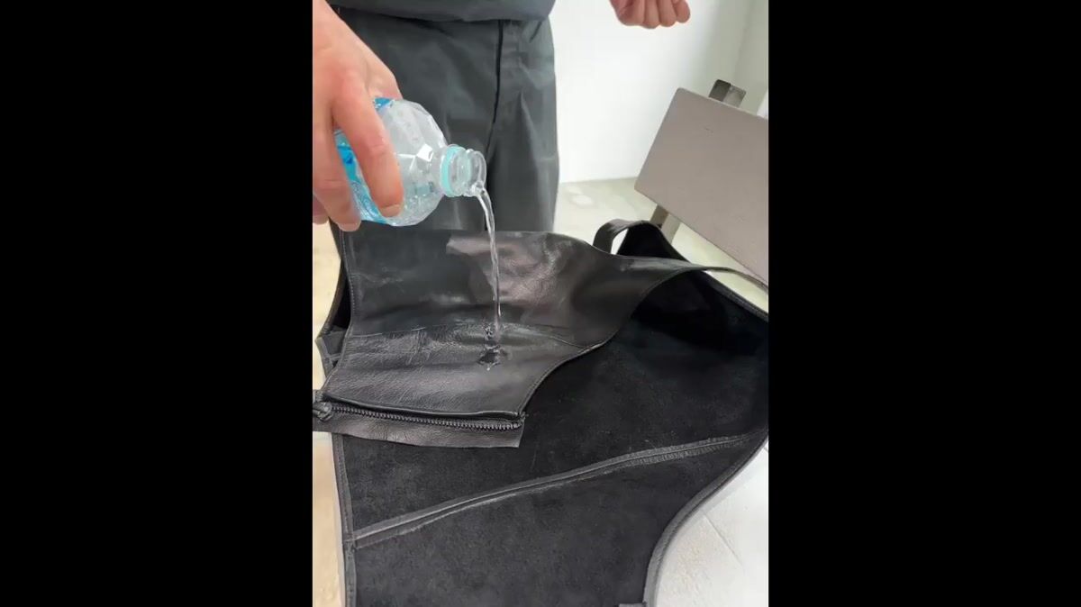 新たに開発した水着は、レザーの表面に撥水加工を施すことで水中でも問題なく動ける機能性を実現。撥水加工を施すにはオーブンのような機械に入れて熱を加えて定着させる「焼き付け」という工程が必要になる。通常染料仕上げのレザーに熱を加えてしまうと硬く、質感が損なわれてしまうことから、これまで本革の水着開発は不可能とされてきたが、鞣しの段階でレザーに油分を多く含ませておくことのほか、「焼き付け」の後に「太鼓」と呼ばれるドラム式洗濯機に似た機械でふるいにかけることなどを通して、撥水性を持たせつつレザーを柔らかく仕上げることに成功した。長岡は、製品化前に実験も兼ねて同水着を着用してプールや海でスイミングを楽しんだが、淡水、海水問わず問題なく使用できたという。