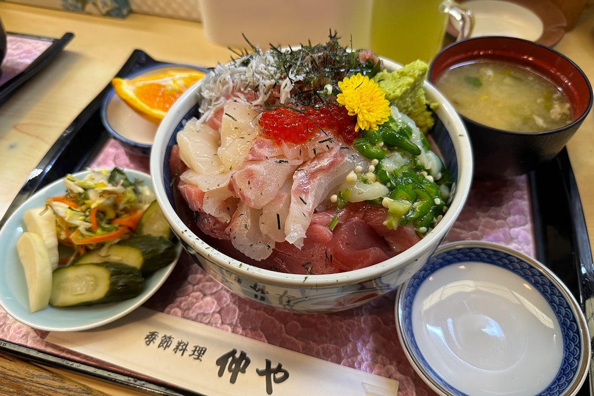 かつてはどっさり山盛りのマグロが乗った、生マグロ丼で一世を風靡。いつしか海鮮丼となってからも(おそらくコロナ禍を機に変わり、以後、夜の営業も今はやっていない様子だが、昼間の店内は活気にあふれている)「仲や」は舌の肥えた海鮮ファンまでをも虜にし続けてきた。