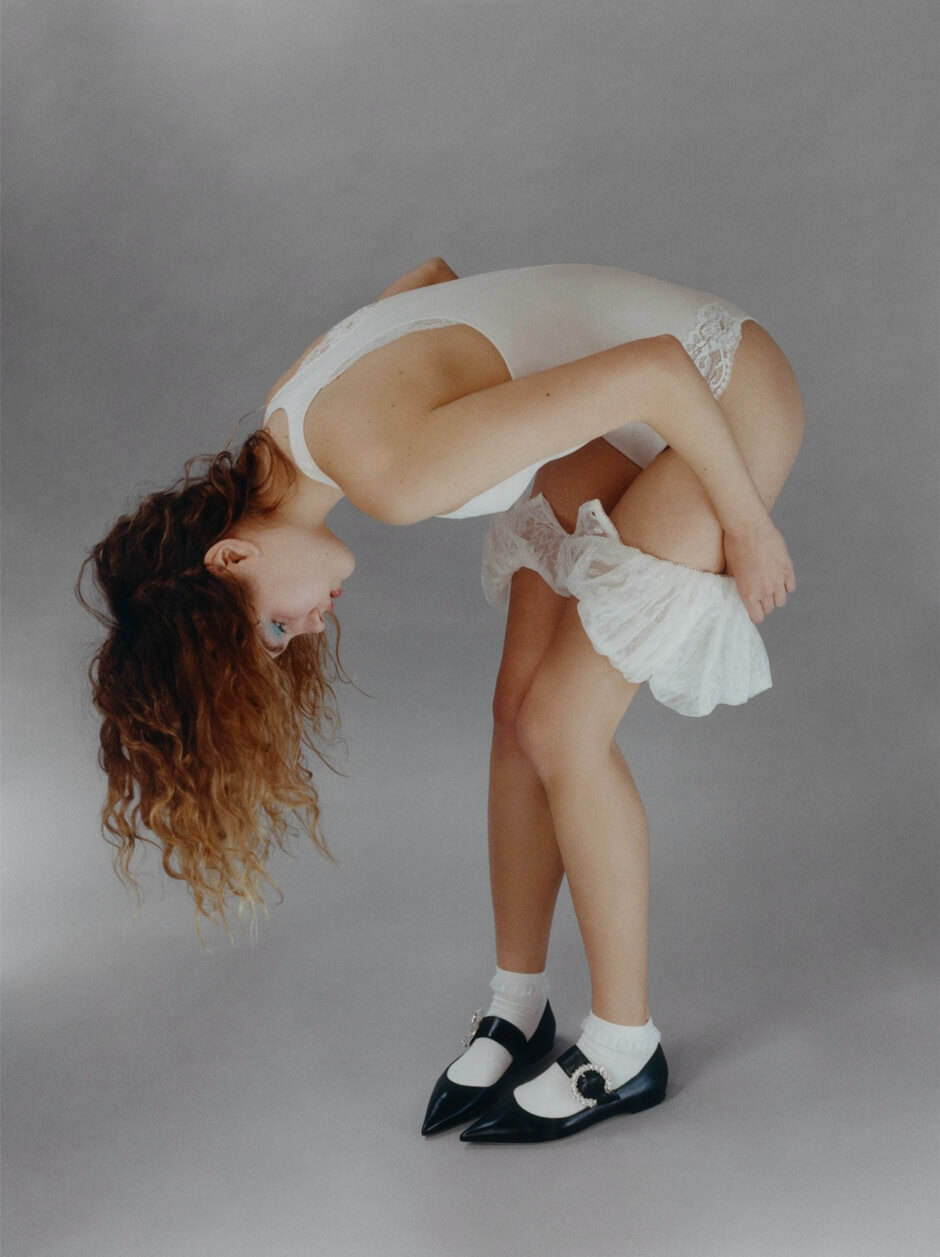 bodysuit by LA PERLA, shorts by JACQUEMUS, shoes by JIMMY CHOO, socks stylist’s own