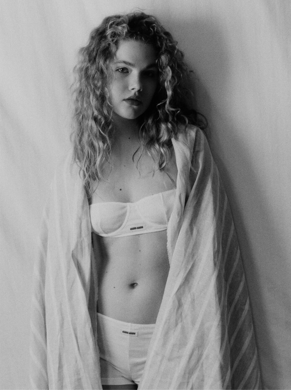 The photo series focuses on intimate and relaxed fashion, featuring various combinations of lingerie, loungewear, and casual outfits.