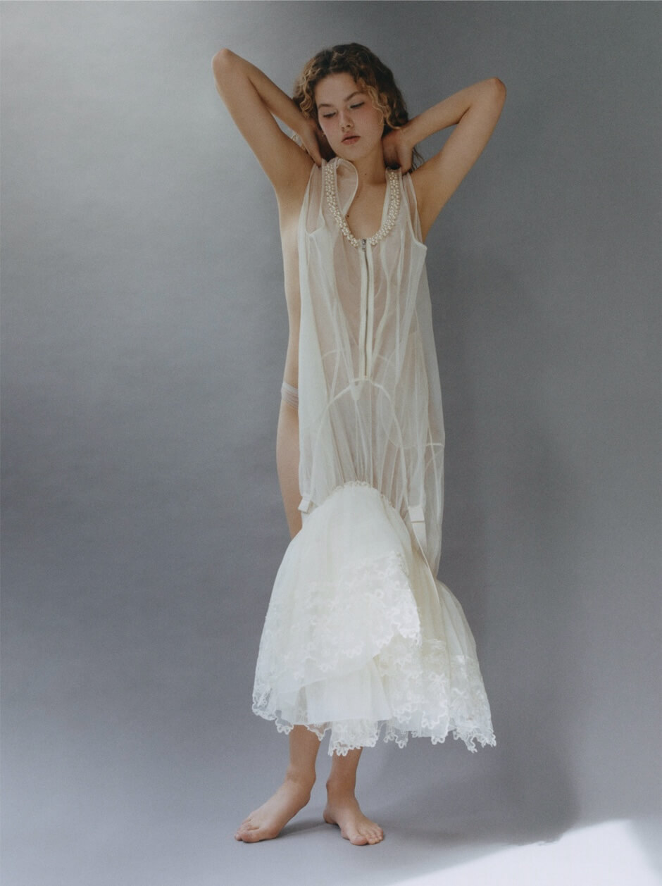 ランジェリーや部屋着、カジュアルな服装などのさまざまな組み合わせを取り上げ、親密でリラックスしたファッションに焦点を当てたものです。