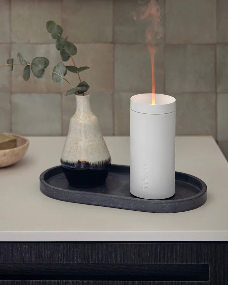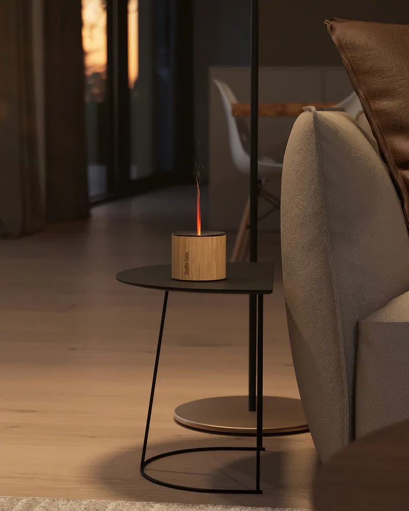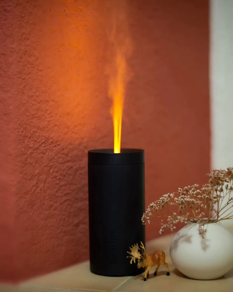 「アロマ」+「ゆらぎ」で視覚と嗅覚の両方から“極上のヒーリング時間”を体験できる「ノラ(Nora)」。エッセンシャルオイルと琥珀色の光がミストを炎のように演出し、いつもの部屋がドラマティックな空間に様変わり。どんな部屋にもマッチするデザインで、最外での使用にも適している最大約7時間使用可能な充電式バッテリーを搭載しています。