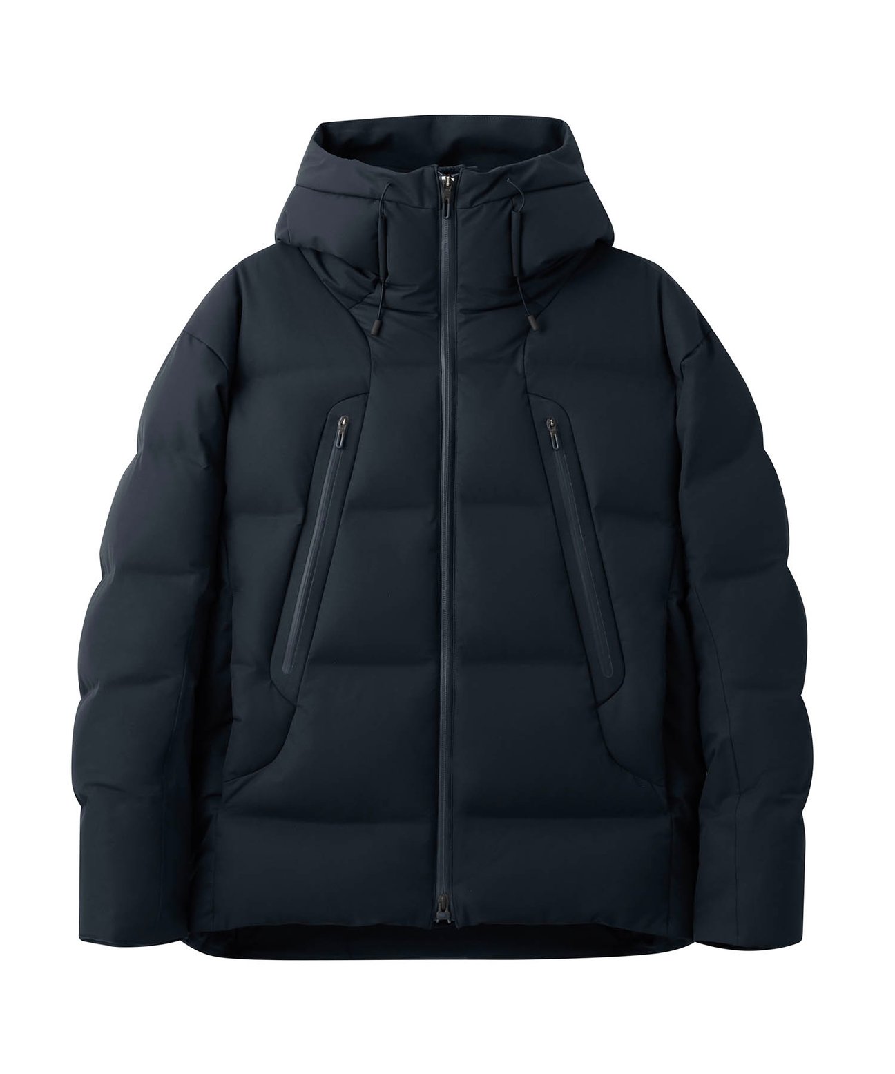 水沢ダウンは、防水性、保温性に優れた高機能ダウンジャケット。デサントの水沢工場で職人の手によって生産され、熱圧着製法とシームシーリング加工により水の浸入を防ぎ、温まった空気を逃さない構造を採用している。