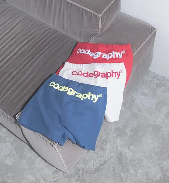 ヒップのcodegraphyロゴが目を惹く「HTH × codegraphy hip logo shorts」(税込5990円)と、セットでの着用もおすすめ◎