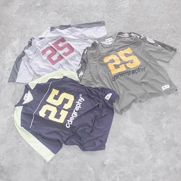 「HTH × codegraphy uniform tee」(税込6990円)は、メッシュの切り替えと、フロントのナンバリングデザインが特徴のゲームシャツ。