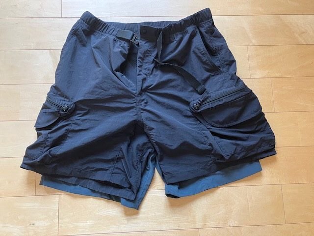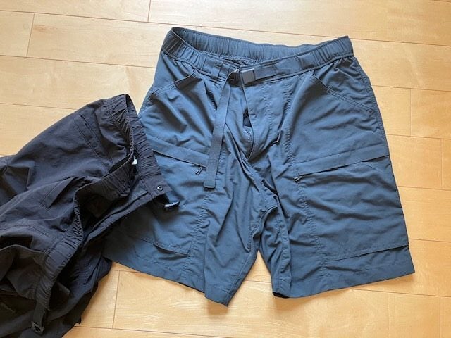 またズボン丈はカーゴショーツの方が短い。シルエットは太短い。ギアショーツは細く長い。どちらも膝上丈ではあるが。