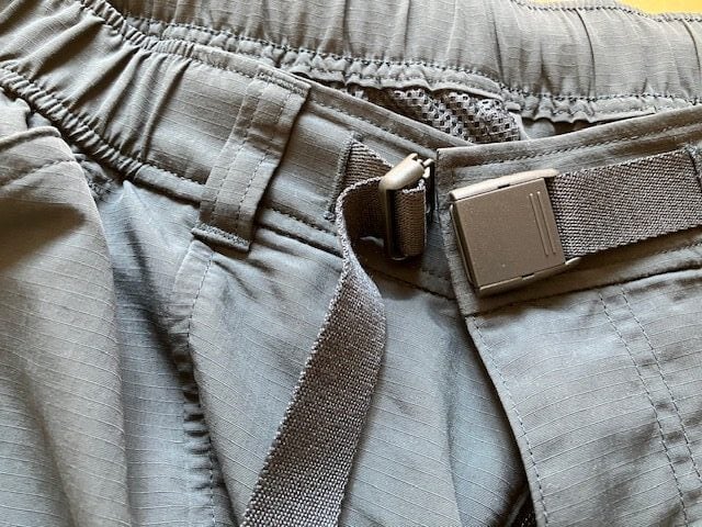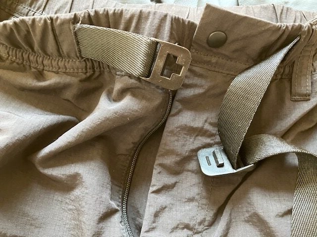 まず、腰に内蔵されたストラップ型ベルト。これも画像を見てもらえば分かると思うが、ギアショーツはストラップの先端を差し込むタイプ。バックル上のところを押すと外すことができる。