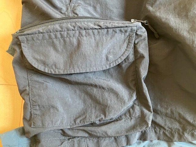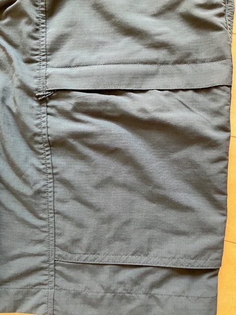 一方のギアショーツにも両腿外側にはカーゴポケットがあるが、こちらはマチ無しで目立たないようになっている。マチが無いのであまり物を入れ過ぎても不格好になってしまうので、収納するとしても定期券とクレカを収納する程度ではないかと思う。