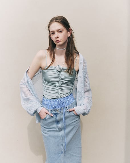 「ファーファー」(マッシュスタイルラボ)は23年夏から、バレエコアのトレンドに注目した。24年春夏では体にフィットするシルエットのトップや、チュチュに見立てた立体的なフォルムのスカート、リボンのアイテムを提案した。特にバラのコサージュを胸元に付けたキャミソール(税込み9900円)は即完売する人気だった。