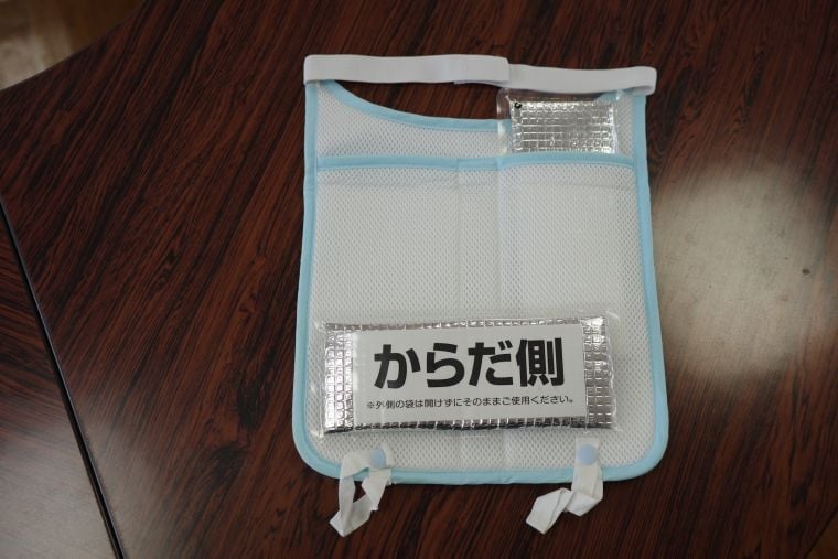 地元企業のランドセルのセイバンに相談を持ちかけ、保冷剤を入れられるランドセル用の背あてパッドを23年7月に全児童(約3800人)に支給。