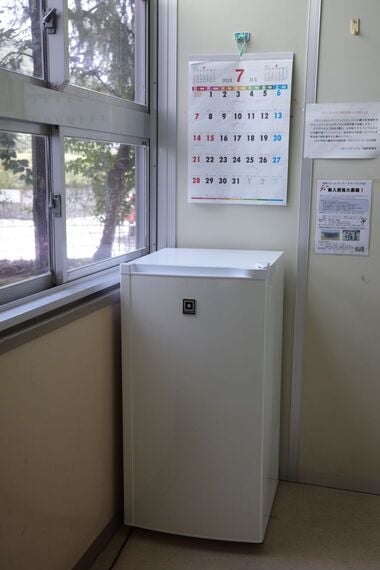 龍野小学校(児童数207人)では、2学年ごとに1台、計3台の家庭用冷凍庫を設置しています。空き教室や、通行量の少ない廊下に置いています。