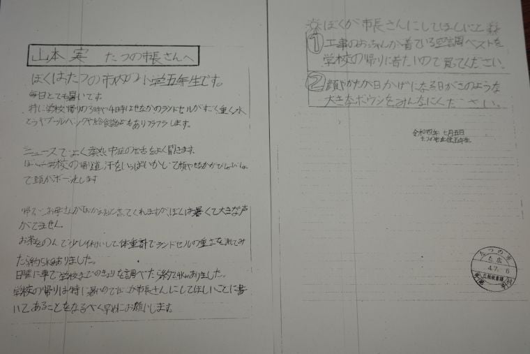 そもそもの始まりは、地元の小学生から、市長宛に1通の手紙が届いたことでした。