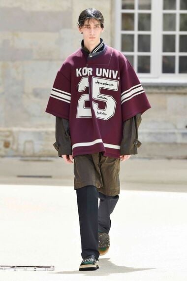 米国のカレッジスタイルのアイテムをベースにしたのは、「ダブレット」や「カラー」。ダブレットのスタジアムジャンパーは、大きな襟やフードのようなパーツが特徴で、襟が自由自在に折り曲げられる。カラーはアメリカンフットボールのユニフォームのようなカレッジTシャツをレイヤードで着る。