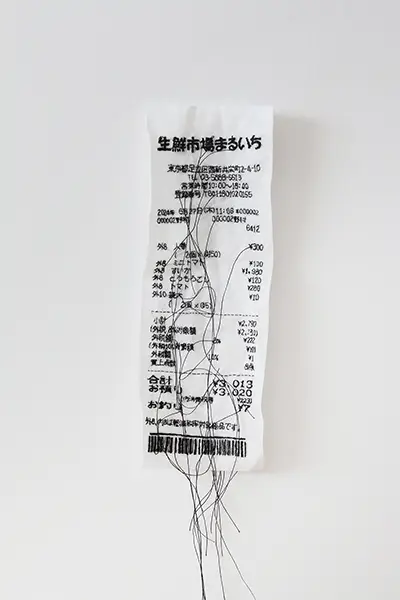 中でもスーパーのレシートをモチーフにした作品は、細かな部分まで刺繍で施されていてびっくり…!
