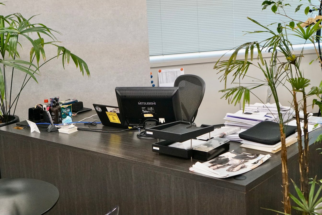 そしてなんといっても驚いたのが、副社長のデスクが同フロアにフラットに置かれているということ! 大手アパレル企業のNo.2といえばビルの高層階に部屋があり、隔離されているイメージ…ですが、ブランドの事業部長も兼任しているため、副社長でありながら一般社員と同じフロアにデスクを構えていました。上層部との距離が近いのは同社の魅力の一つなんですね。