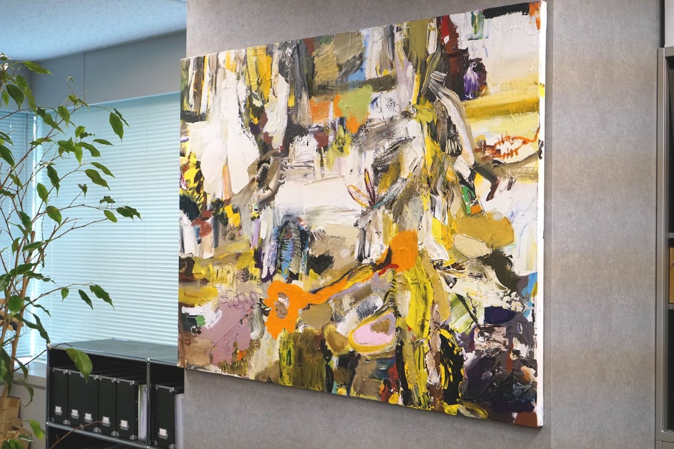取材中、部署や立場に関係なく談笑している様子も見られ、働いている人も魅力の一つだと実感。社長室フロアだけでなく、シェルターグリーン事業や「PROJECT U」作品の展示など、大手アパレルメーカーである同社の実績や現在の取り組みが体感できるオフィス空間でした。