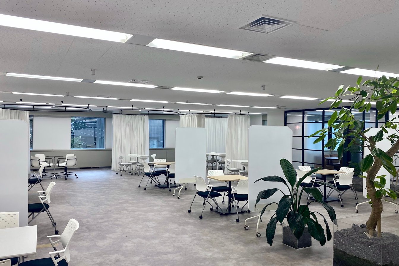 まず訪れた3階のミーティングスペースにはカーテンブースや応接室などさまざまなタイプの部屋がずらりと並んでいます。