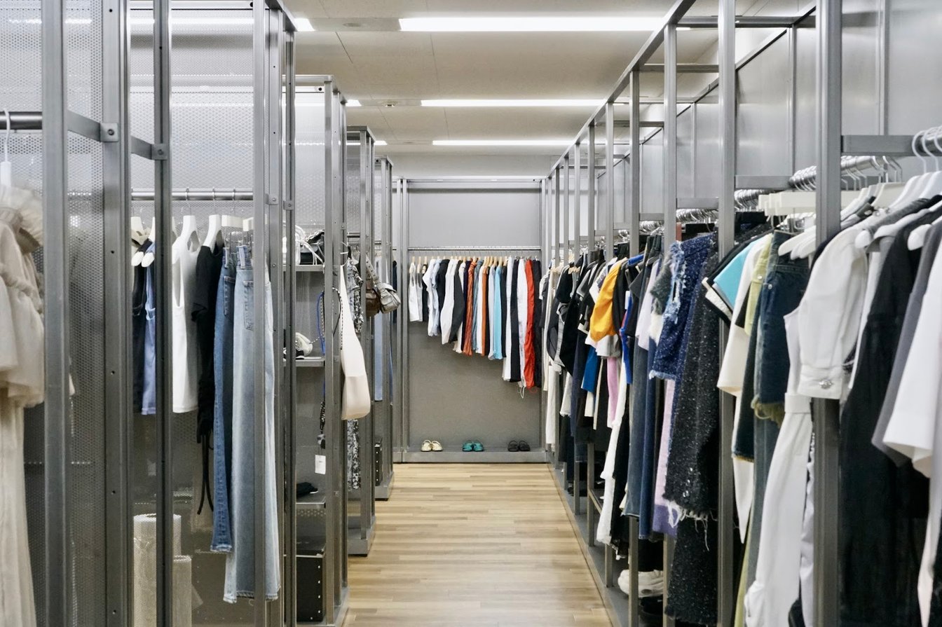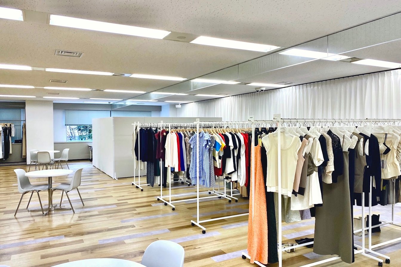 プレスルームの奥には、シーズンのルックやEC撮影のコーデ組みを行うスペースも併設しているそうです。