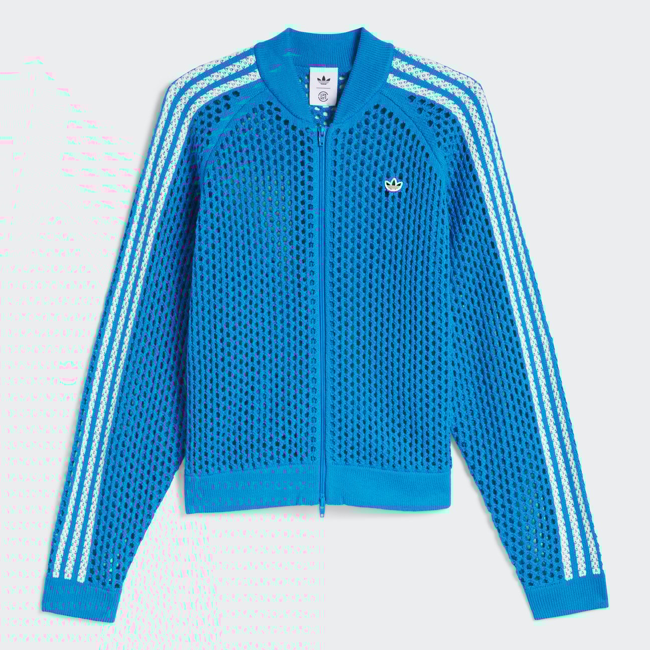 アパレルは、「クロッシェジップジャケット」(3色、2万7500円)、「クロッシェショートパンツ」(2色、2万2000円)、「クロッシェポロ」(2色、1万9800円)、「リブタンクトップ」(1色、7700円)の4型を製作。テーラードフィットやラグジュアリーな素材で贅沢なリゾートライフを体現しながらも、コンテンポラリーなエッジも兼ね備え、エレガントでありながらリラックスしたアイテムに仕上げたという。全てにメッシュステッチを施したほか、ジャカード織りのスリーストライプスのモチーフと刺繍ワッペンをあしらった。