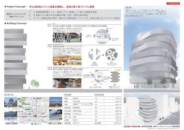高知信用金庫は、創業100周年記念事業として、高知県におけるアニメクリエイターやアニメ関連企業の集積による、雇用の創出と地域活性化を目的とした「高知アニメクリエイター聖地プロジェクト」を推進している。同信金ではこのプロジェクトの一環として、中心市街地にアニメ産業を集積し、若者が集う街づくりに貢献するための拠点として、アニメクリエイターラボ複合施設「GEAR」を建設する。