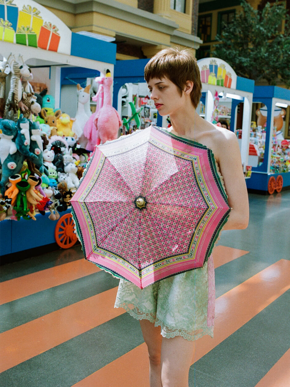 shorts by BITTE RUHE, vintage umbrella by SOVIET VINTAGE