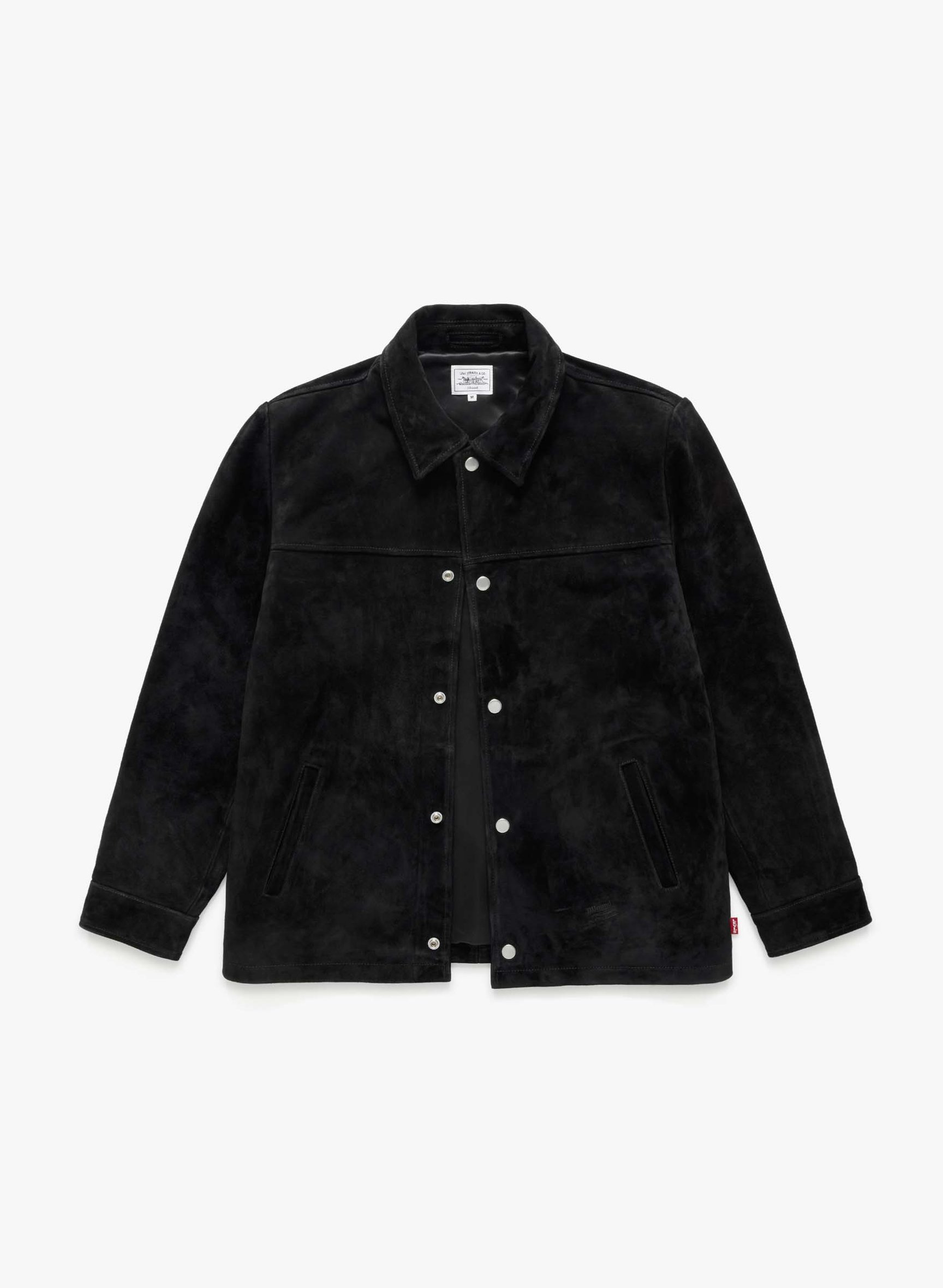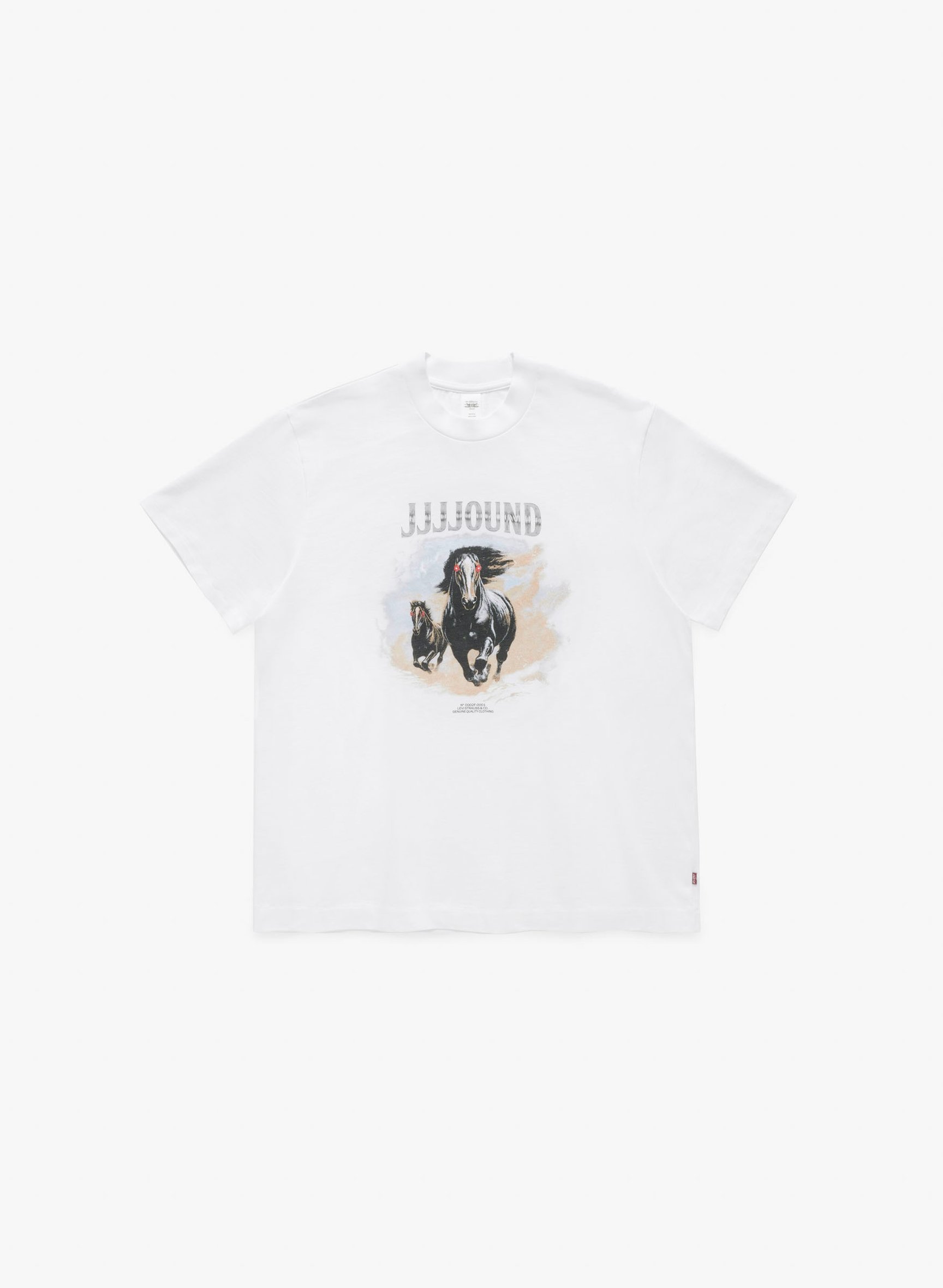 両ブランドのコラボは、2023年にライトウォッシュのデニムをフィーチャーしたカプセルコレクション以来2度目となり、今回はダークウォッシュのデニムを中心としたウェアと小物を計10型を展開する。ミッドライズでストレートレッグの「Levi’s® x JJJJound 501® ’93」(3万8500円)には、グレー・ストーンウォッシュ、ダークグレー・ストーンウォッシュ、ブラック・オーバーダイの3種類のウォッシュ加工を採用。ヴィンテージのバンドTシャツからインスピレーションを得たグラフィックTシャツ(1万3200円)は、ウォッシュ加工を施したブラックとホワイトの2色展開で2頭の馬のグラフィックをプリントであしらった。このほかに、ジョウンドのシグネチャーであるワークシャツをベースにしたコットン100%の起毛素材を使用プレイドシャツ(2万7500円)や牛革のブラックレザーを素材に採用したスエードコーチジャケット(9万7900円)、タンクトップ(7700円)、ブラックのキャップ(1万9800円)、ベルト(1万6500円)を揃える。