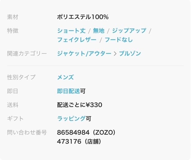 今回、ZOZOTOWNからレコメンドされた商品は、商品名にはヴィーガンスエード ボンバージャケットと記載されている。商品名だけを見ると、サボテンなどを利用して作られた植物由来の「ヴィーガンレザー」なのかと思ってしまう。ただ、スエードと表記されているものの、レザーの表記はどこにもない。素材の表記を見ると、ポリエステル100%とある。曖昧な表記になるが、JISの規定には触れていない。