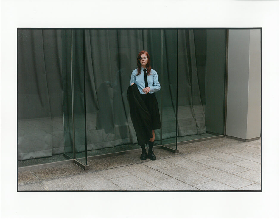 The background and the model’s expression convey a hidden, unrevealed atmosphere, which, in a sense, is the ‘mysterious’ quality I wanted to convey, through fashion, in this work.