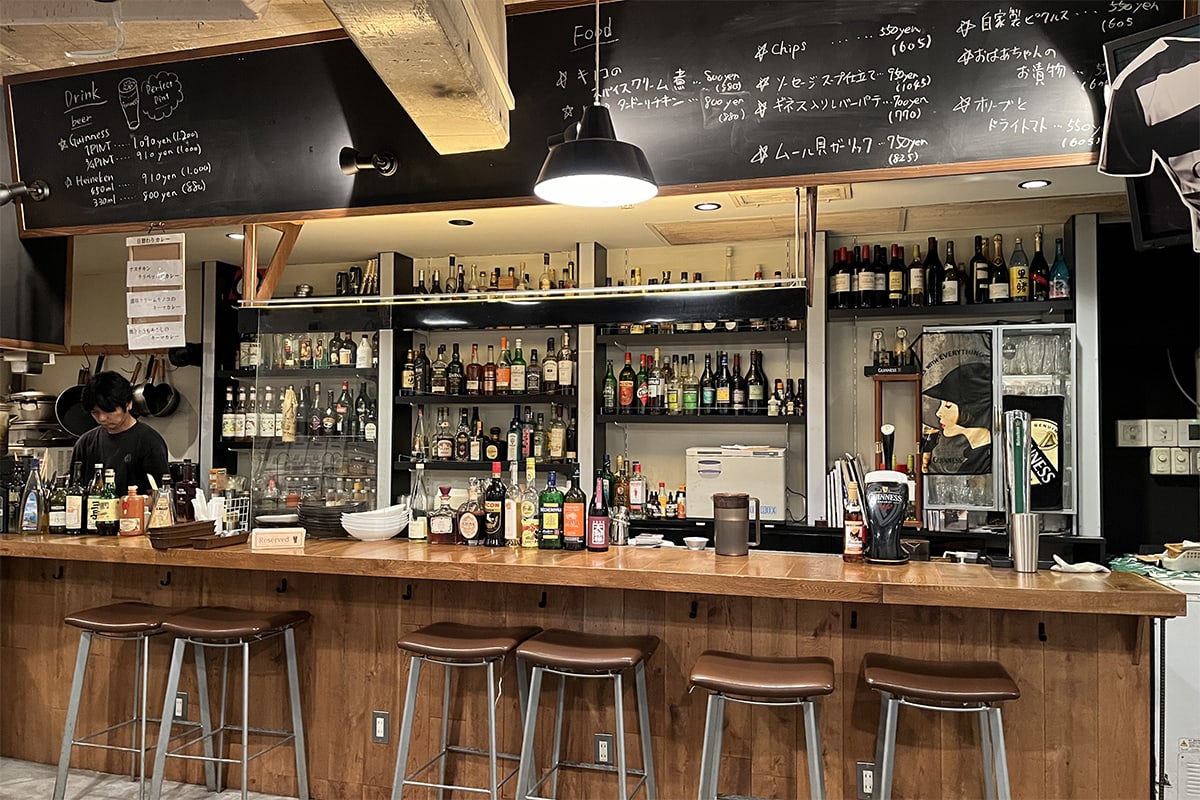 ”日本一”の樽詰GUINNESSと書かれている夜のメニューや、酒瓶が並んだ棚をあまりにもじっくりと眺めていたのか、昼にもビールをお出していますよと声をかけられた。おいしいカレーに日本一のギネスビール......。どういう日本一なのか気になるし、ビール好きの編集部員にとって魅力的すぎる誘惑。