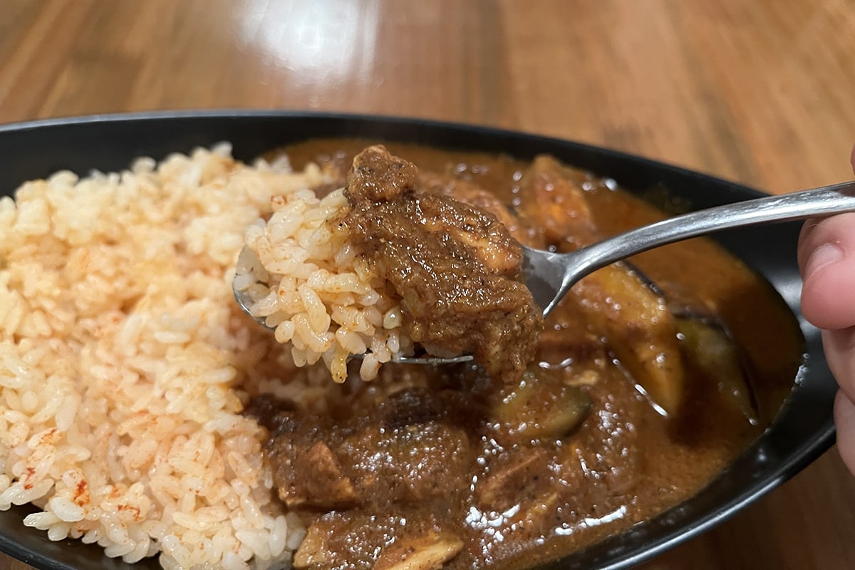 大きめにカットされたナスやチキンでルーとともに口の中をいっぱいにする幸福感。具がシンプルだからこそ、スパイスとの最高のハーモニーをダイレクトに感じられるのだと思った。