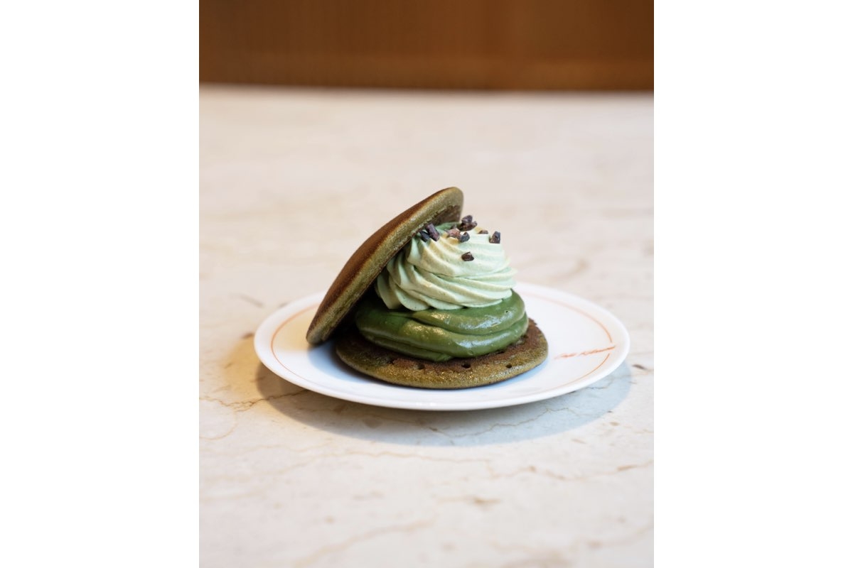 青山店限定での提供となるのは「抹茶フラン」と「抹茶どら焼き」。フランスの人気家庭菓子・フランを Café Kitsuné 流にアレンジした「抹茶フラン」は、八女抹茶を使用したコクのある甘さが特徴的。「抹茶どら焼き」は、生地にも抹茶が練り込まれ、中央には宇治抹茶の濃厚なカスタードをたっぷりと挟んだ、見た目にもゴージャスな1品だ。フランス菓子と和菓子の要素をミックスした、Café Kitsuné らしさが感じられる仕上がりとなっている。