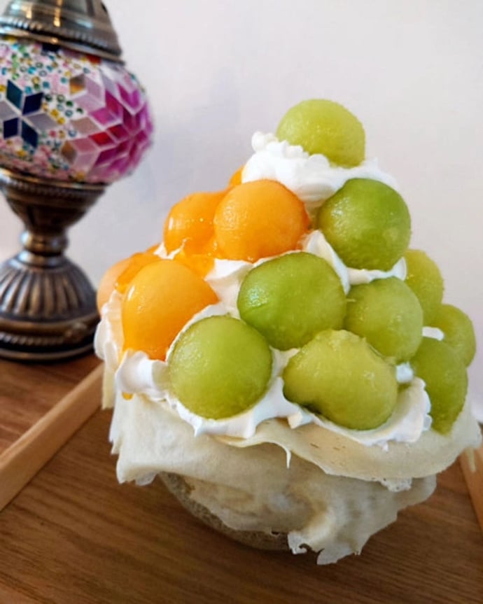 こちらの「爆弾メロン」は、名前の通り“爆弾”のようなメロンが山盛りのクレープ。