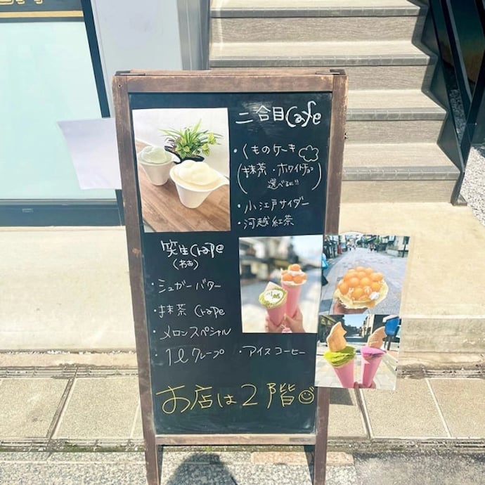 「cafe二合目」と「笑生crape」は、同じ店舗で2つの異なるお店のメニューを販売している個性的なカフェ。
