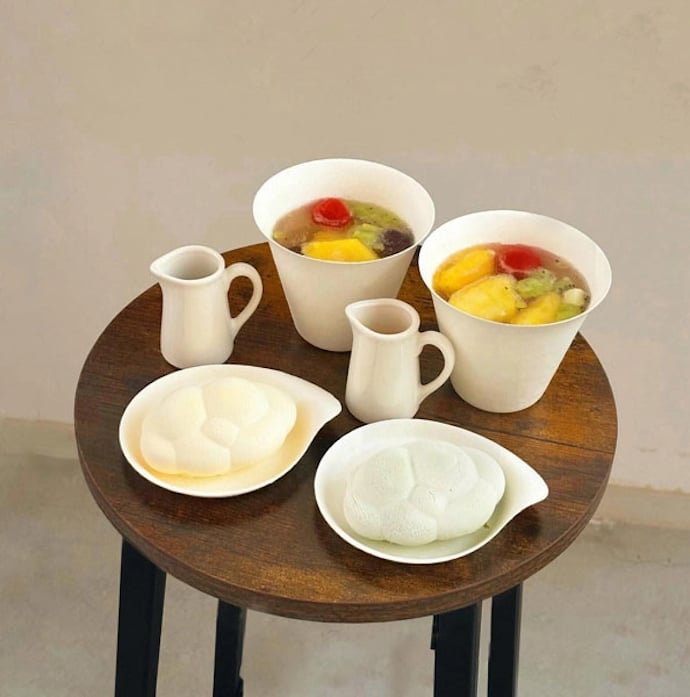 一瞬ドキッとするほどリアルなつくりですが、たっぷりのホイップクリームとさくらんぼが、クロックスのサンダルをおいしそうにみせてくれるから不思議です。