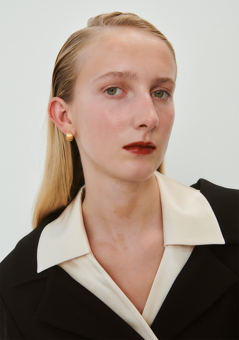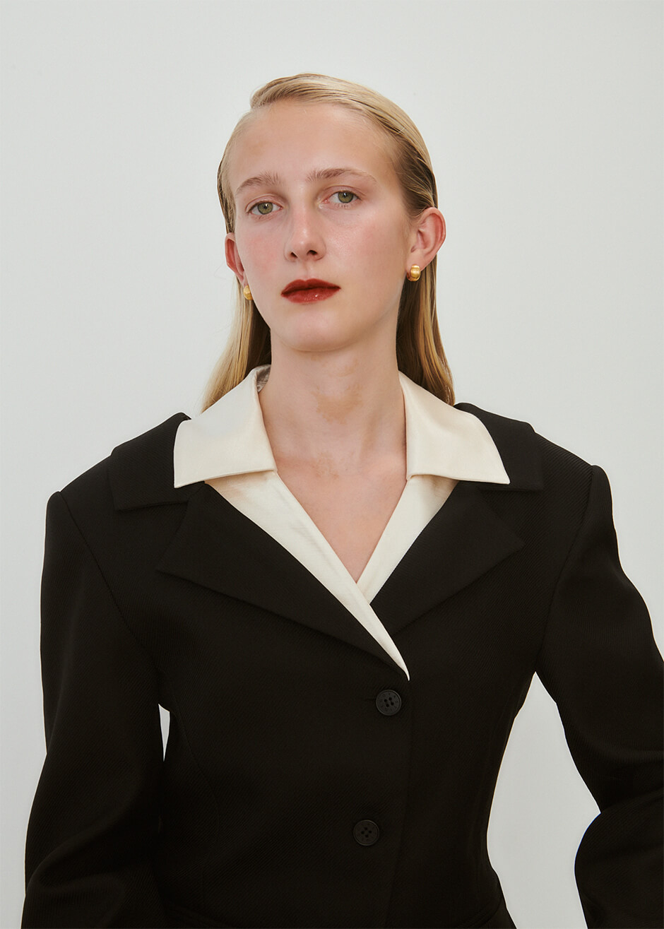 jacket by STINE GOYA, necklace by SAINT LAURENT, earrings by SOPHIE BUHAI