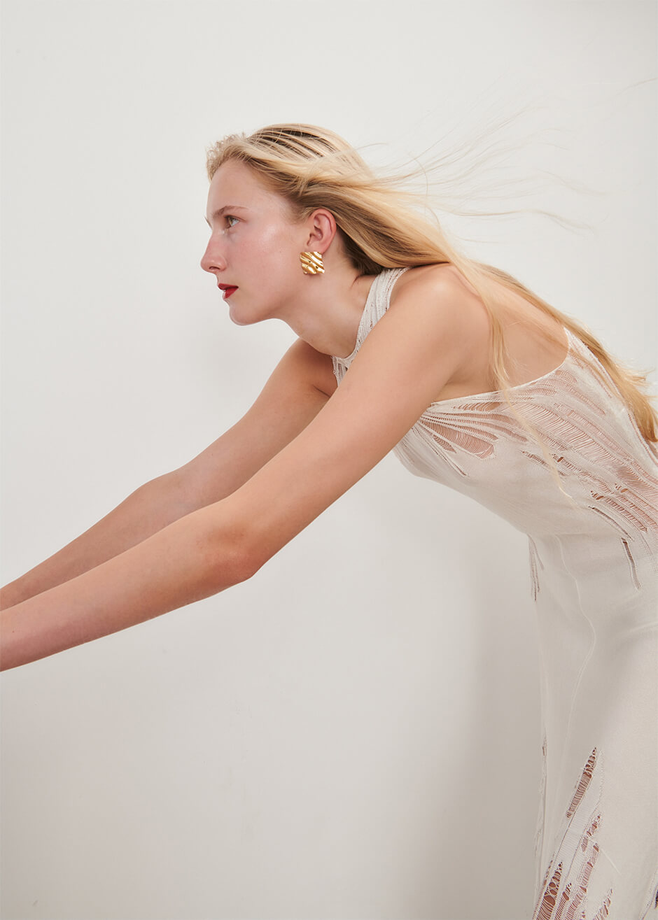 dress by CRITTER, sandals by JIL SANDER, vintage earrings stylist's own