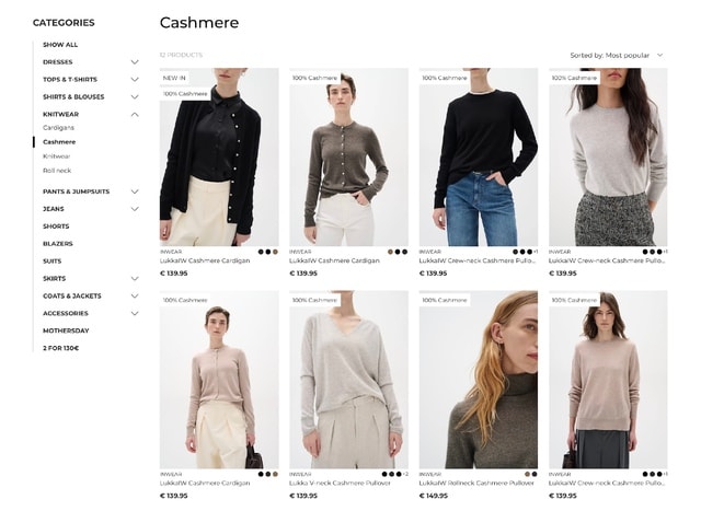 心地良い肌触りで、オフィシャルを兼ねたタウンユースになると、やはりカシミアに勝るものはない。原料となるカシミア山羊の毛は、繊維が細くしなやかなので、肌触りの柔らかさ・刺激のなさを求める人にはもってこいだ。そのため、ブランドメーカーや大手プラットフォーマーが運営する通販サイトでは、一般のニットとは完全に分けて公開するところが増えている。ユニクロも24年秋冬では、暖冬になることを予測して初秋から梅春までシーズンを跨いで着られる服を強化するとの一環で、カシミアを打ち出した。