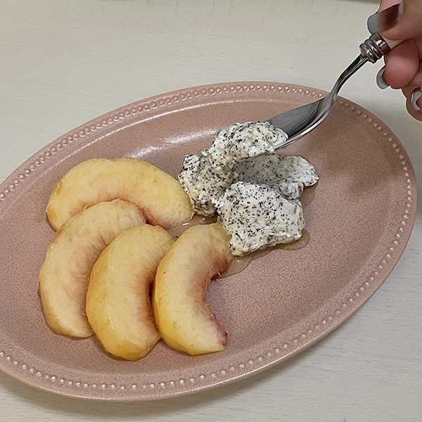 アールグレイグリークヨーグルトに桃を添えてはちみつをかけたら、おしゃれデザートの完成です!