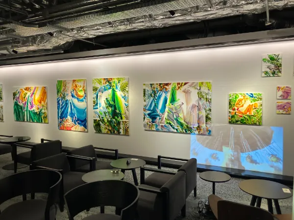 2階のシェアラウンジでは、個展『OIL SELECTION 蓮輪友子』が10月9日(水)まで開催中。蓮輪友子さんは、近年台北やオランダ・ロッテルダムの展示に参加し、国内外で活躍するアーティストです。