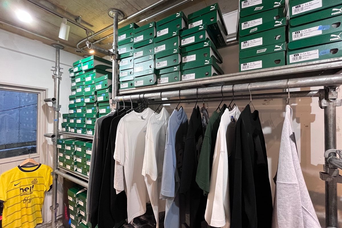 店内にはクラシックなグリーンが一際目立つ、PUMAのシューズボックスが積み上げられていた。スニーカーの箱ってなんでこんなに愛おしいのだろう。このほとんどが先行で予約販売している分で、ボックスには名前が貼ってあった。個人商店的な売り方がローカルっぽくて良い。