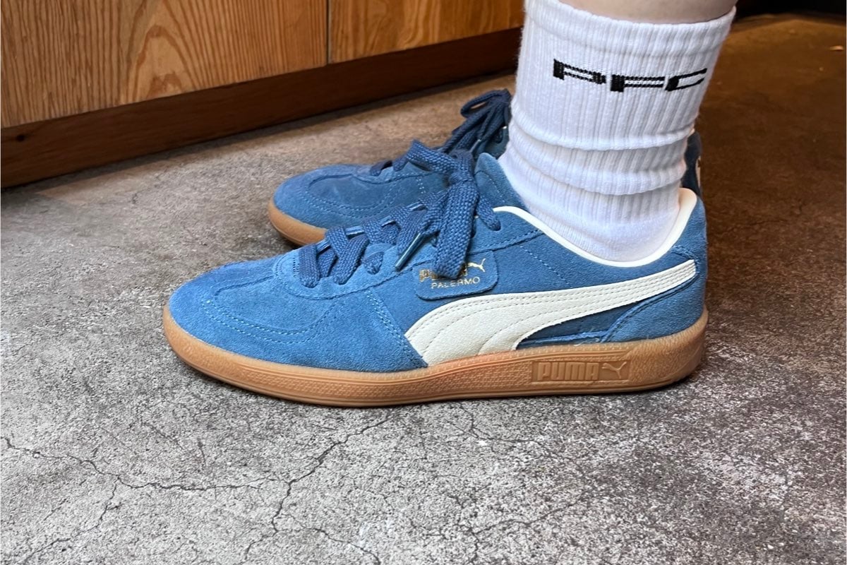 パレルモはもともとマルチトレーニングシューズ、ハンドボール用のインドアトレーニングシューズとして誕生した。1980年代に人気を博し、ロンドンのサッカースタジアムのテラス、いわゆる立ち見席で観戦するサポーターたちがこぞって着用。そんなテラススタイルに欠くことのできない、テラスシューズとして知られているモデルだ。