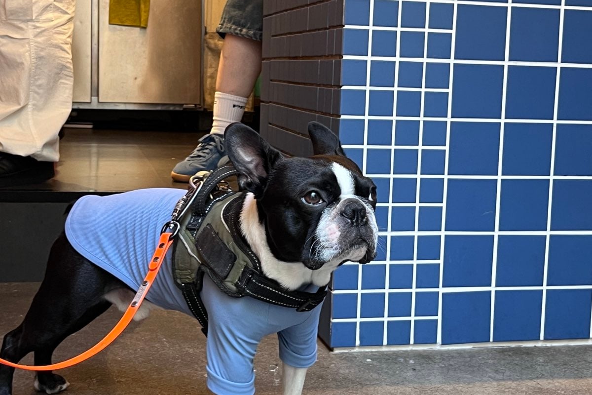 BAGGAGEの看板犬、ペレの箔押しが出現。これはお店に通う人は思わず笑顔になっちゃう遊び心のある仕掛け。ボストンテリア好きにもウケているそう。