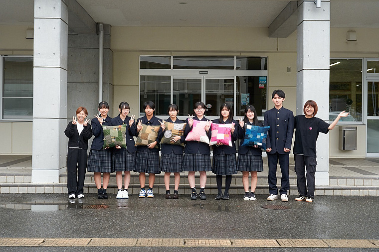 サシコギャルズの刺し子職人は現在15人。高齢化が進み技術の担い手の育成が課題になっている。そこで地元の釜石商工高校と連携し、課題研究の授業として刺し子を取り入れ技術を身に着ける環境を整えた。3年生8人が週3時間、刺し子を真剣に学んでいる。