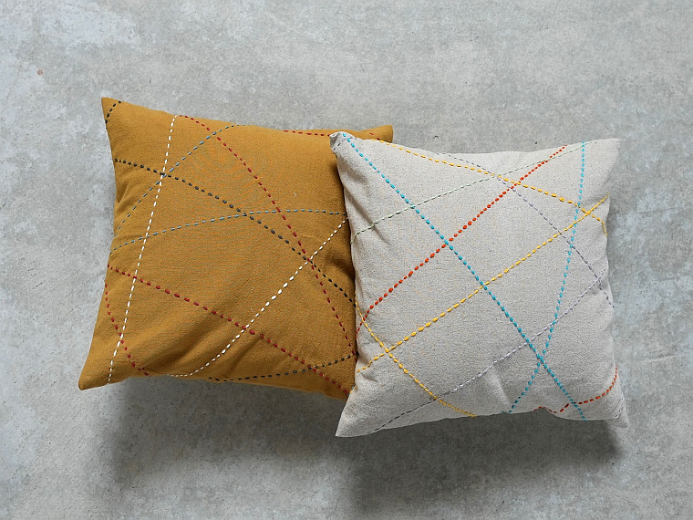 クラウドファンディングで用意したサシコギャルズ×釜石商工の刺し子クッション