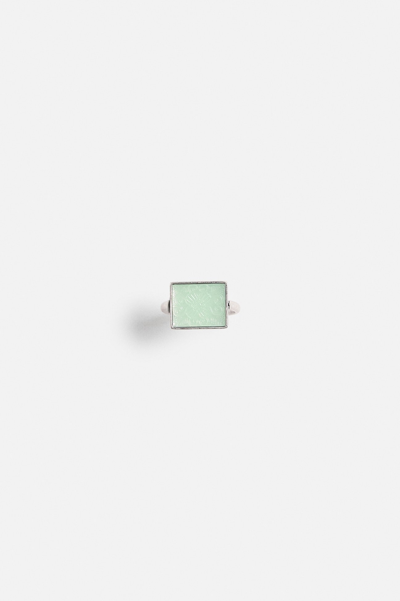 ジュエリーは、リングやピアス、イヤーカフ、ネックレスをラインナップ。ナヌーシュカのデザイナーであるサンドラ・サンダー(Sandra Sándor)が情熱を注ぐオーガニックなフォルムや彼女の過去の思い出を、「バウハウス」にインスパイアされたシルバープレートのメタルピースや、翡翠色の樹脂をシルバープレートのメタルに表現したという。アイテムにはハンガリーや東洋の伝統から着想を得たフローラルや模様が刻まれている。価格帯は4390〜2万9990円。